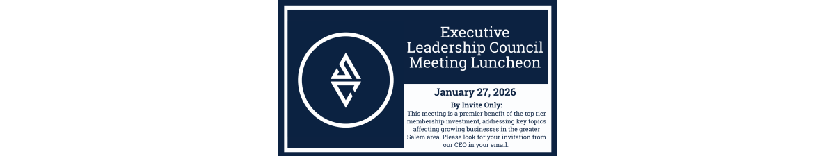 Exclusive to Convener, Catalyst and Champion members, we invite you to join us at our quarterly Executive Leadership Council meeting. This meeting is a premier benefit of your Salem Chamber membership investment, addressing key topics affecting growing businesses in the greater Salem area. Please look for your invitation and registration link from our CEO in your email in the beginning of January.